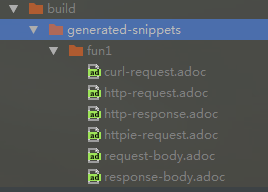 运行 fun1() 测试方法后,会默认在build/generated-snippets中生成fun1文档目录和响应的代码片断,如下图